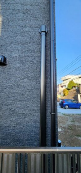 外構工事がこれからやる予定という事で、地盤が低く、接続カバーのジャバラ調整、端末カバーの取付にかなり苦戦💦しかも初施工💦